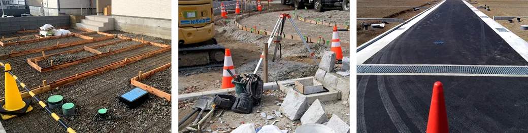 公共工事から民間工事まで、道路や造成地の舗装、住宅の外構まで、幅広い工事に対応しています。