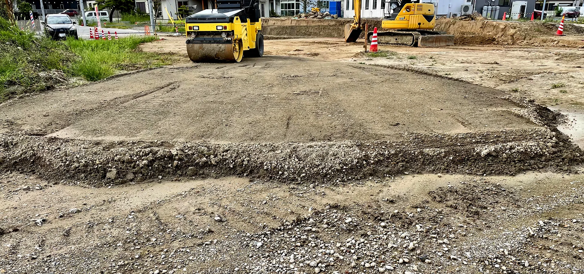 道路改良工事や造成工事、造成地内の舗装工事など、さまざまな工事にご対応できますので、まとめてご相談いただくことでお客様の負担を軽減します。