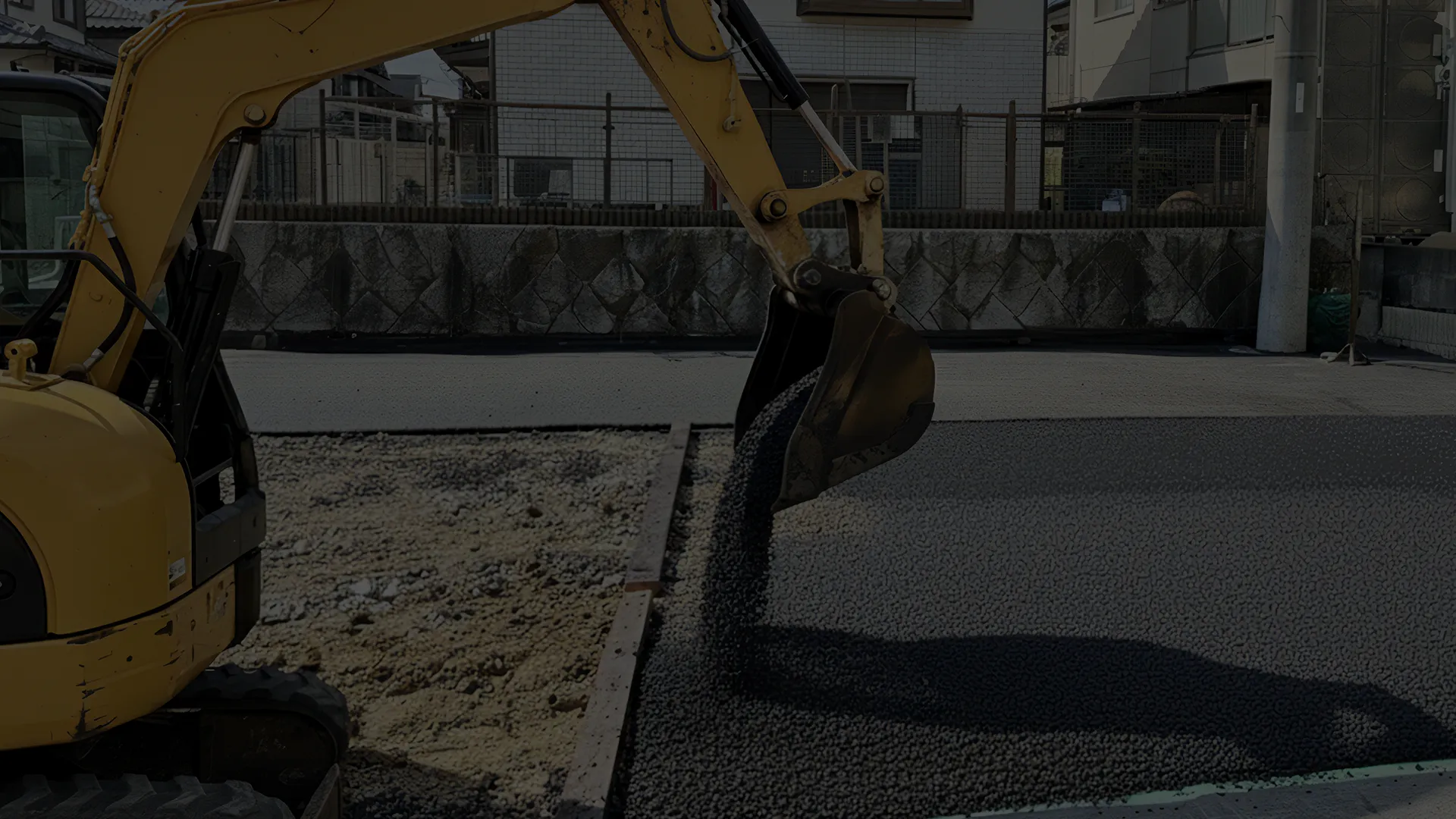 公共工事から民間工事まで、道路や造成地の舗装、住宅の外構まで、幅広い工事に対応しています。